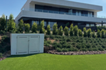 Caseta prefabricada automuntable, dissenyada per protegir i organitzar sistemes de depuració de piscines.