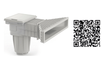 Skimmer de piscina amb efecte mirall, integració perfecta en el disseny i boca estilitzada de 600 mm. Recupera el 99,9% de l’aigua grisa, optimitzant el manteniment i l’eficiència.