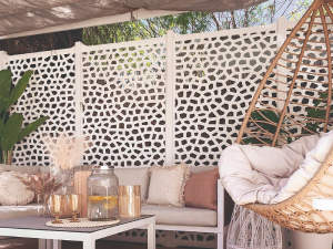 El panell decoratiu MOSAIC combina disseny contemporani i rendiment tècnic. Fabricat en polipropilè 100 % reciclable amb tractament anti-UV, disposa d’una àmplia gamma d’accessoris de fixació per garantir resistència i estabilitat. La seva estructura modular permet crear tancaments, separadors o revestiments amb una estètica elegant en projectes d’exterior i d’interior.