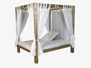 De fusta de pi, el llit Balinesa és una peça de mobiliari exterior dissenyada per a entorns contract exigents com zones de piscina, beach clubs i espais chill-out. La seva estructura robusta i elegant està preparada per resistir condicions climatològiques adverses.
