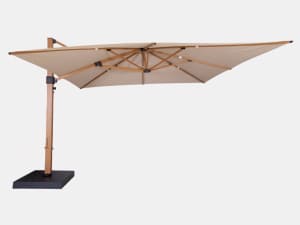 El parasol lateral Elios és un sistema d’ombra dissenyat per oferir una cobertura màxima sense màstil central, ideal per a zones de piscina, chill-out o espais exteriors contract sofisticats. La seva estructura d’alumini amb acabat fusta, fabricada a Espanya per Ambiazza, combina lleugeresa, resistència climàtica i una estètica càlida. Amb una cobertura de 4×4 m i rotació de 360°, està armat amb 8 varetes reforçades i un màstil robust que garanteix una estabilitat total en ús exterior. La tela tècnica és resistent a la radiació UV, la humitat i el desgast.