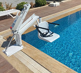 Autonomous electric lift for people with reduced mobility. Ensure safe and comfortable access to the pool with no need for installation works.