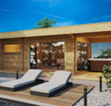 All-in-one cabin with a sauna, lounge and terrace. Perfect for making that complete, inviting wellness space, with panoramic views.
